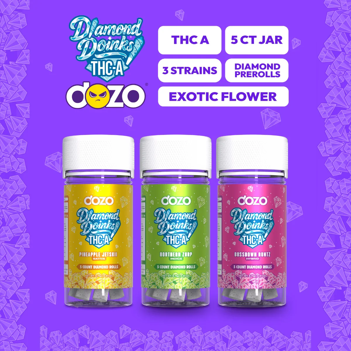 DOZO THCA DIAMOND DOINKS PREROLLS 5PK 1CT JAR